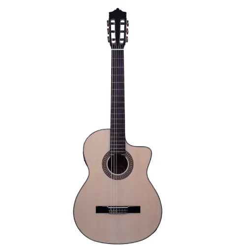 הגיטרה כוללת אום ואוכף מעצם, מפתחות כיוון מוזהבים, ומיתרי Savarez 500 CJ במתח גבוה. גימור PU מבריק מעניק עמידות גבוהה ומראה יוקרתי, בעוד מבנה Fan Bracing קלאסי מבטיח הפקת צליל עשירה ומדויקת.
